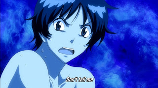 Well I guess the artists of this show just can't resist drawing his muscled bod, because a mere two episodes later (that would make this episode 7) . . .